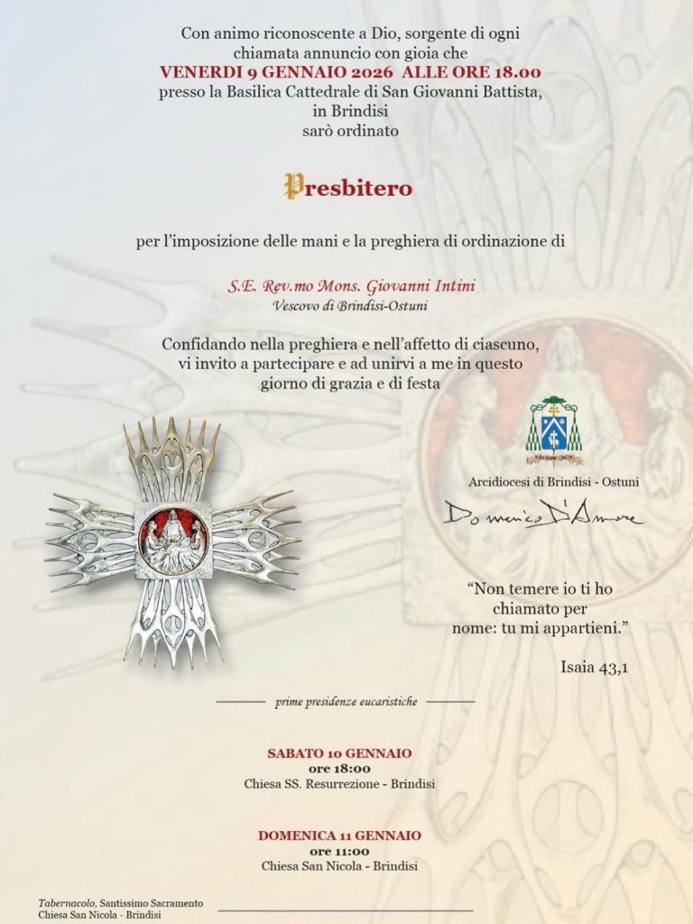 Con gioia condividiamo l’invito all’Ordinazione Presbiterale di don Domenico D’Amore, che si terrà venerdì 9 gennaio 2026, alle ore 18.00,…