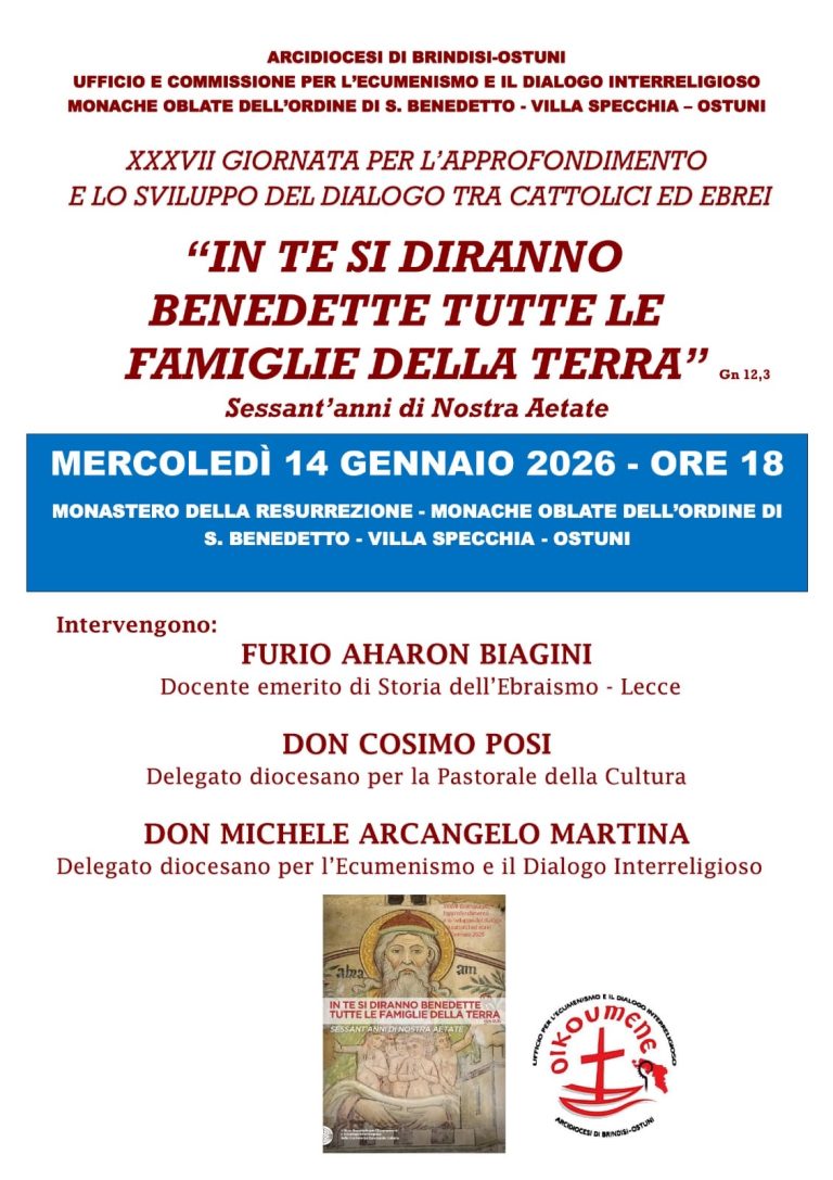 L’Arcidiocesi di Brindisi-Ostuni, attraverso l’Ufficio e la Commissione per l’Ecumenismo e il Dialogo Interreligioso, propone due significativi appuntamenti inseriti nel…
