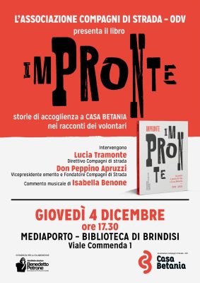 📅 Giovedì 4 dicembre – ore 17.30📍 Mediaporto – Biblioteca di Brindisi, Viale Commenda 1 Intervengono:🔹 Lucia Tramonte – Direttivo Compagni di strada🔹 Don Peppino Apruzzi – Vicepresidente emerito e Fondatore Compagni di Strada🎶 Commento musicale di Isabella Benone Un appuntamento per scoprire quanta luce può nascere dall’incontro.