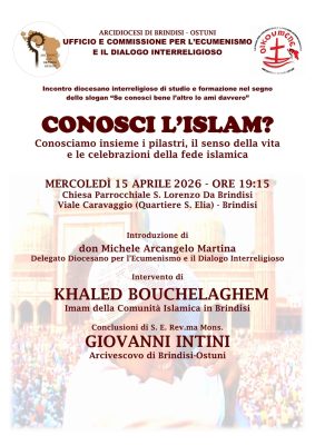 Vi Invitiamo calorosamente al seguente appuntamento descritto in locandina e Vi chiediamo la gentilezza di trasmetterlo e caldeggiarne la partecipazione presso comunità parrocchiali, comunità religiose, operatori ecclesiali, aggregazioni, insegnanti IRC, insegnanti e docenti, associazioni territoriali, social media, ecc. Grazie tante e cari saluti d. Arcangelo e Commissione per l’Ecumenismo e il Dialogo Interreligioso