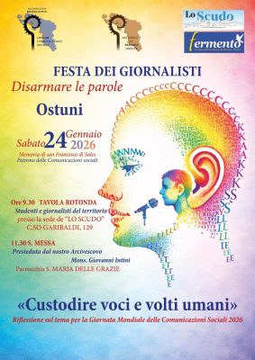 Oggi, 24 gennaio 2026, presso la sede del Mensile Lo Scudo in Ostuni si è vissuta la Festa dei Giornalisti organizzata dall’Ufficio Comunicazioni Sociali della diocesi in occasione della ricorrenza di San Francesco di Sales, patrono del mondo della comunicazione. A partire dal Messaggio del Santo Padre per la LX Giornata Mondiale delle Comunicazioni Sociali […]