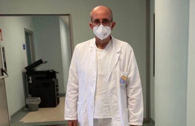 In foto: il sacerdote Giorgio Occhipinti in corsia