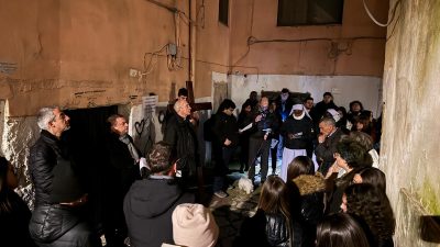 La serata è stata divisa in due parti. Nella prima parte si è vissuto un momento di pellegrinaggio nei luoghi “bui” del centro storico, non solo per esprimere fede, ma per lasciare un segno concreto nei luoghi quotidiani dei ragazzi. Durante le tre soste che sono state effettuate sono stati consegnati ai luoghi dei messaggi di speranza e dei vasetti “illuminanti” per portare luce e speranza nel buio. Il percorso ha toccato anche aree simboliche per i più giovani, spazi di aggregazione dove, come evidenziato dagli organizzatori, emergono spesso fragilità, solitudini e perfino segnali di sofferenza sociale. Tali realtà, presenti nel tessuto urbano e giovanile, costituiscono una ferita che la comunità ha voluto riconoscere pubblicamente e accompagnare con vicinanza e attenzione, ricordandoci che nessuno di noi cammina mai nel buio da solo.