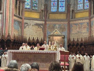 Ieri sera l’Arcivescovo Mons. Giovanni Intini ha salutato i pellegrini giunti ad Assisi, raggiungendoli dopo aver preso parte al viaggio vissuto con le famiglie della diocesi a Loreto. Nel suo intervento ha invitato tutti a vivere il pellegrinaggio con uno spirito profondo di fede e di riflessione.